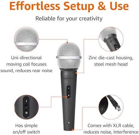 EXCEPTIONAL VOCAL CLARITY: This vocal microphone has a cardioid pickup pattern that isolates the main sound source while minimizing background noise and feedback, delivering clear and crisp vocal reproduction DYNAMIC PERFORMANCE: This microphone is engineered for clarity and punch, providing high gain before feedback, perfect for live performances, recordings, public speaking, or as a podcast microphone WIDE FREQUENCY RESPONSE: Enjoy brilliant and transparent sound with the built-in spherical wind and pop filter on this dynamic microphone, which effectively minimizes breath and pop noises DURABLE CONSTRUCTION: The professional microphone is crafted with zinc die-cast housing and a steel mesh head HASSLE-FREE SETUP: Includes cable (mic XLR to 1/4 inch) for instant connection to amplifiers, mixers, and other audio equipment.