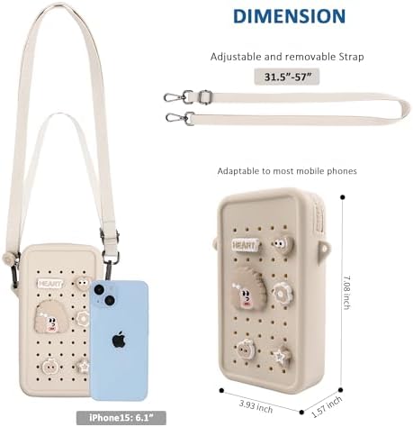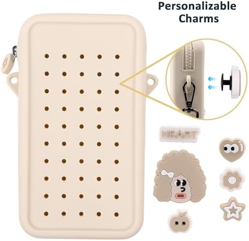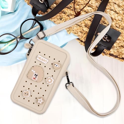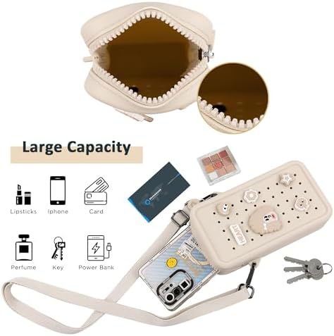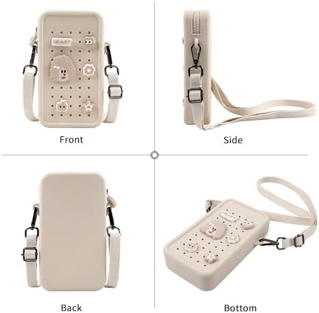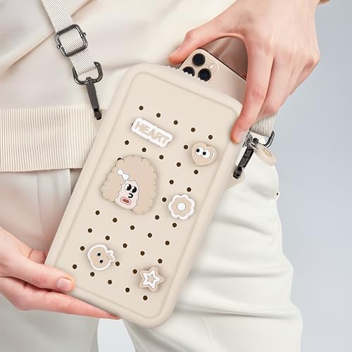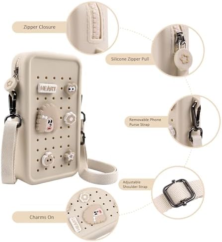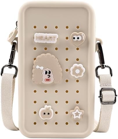 Elecbae Small Crossbody Bag for Women with Customizable Charm Holes, Compact & Durable with Adjustable Strap, Perfect for Everyday Use (Beige)