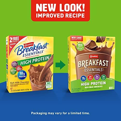 Carnation Breakfast Essentials High Protein Powder Drink Mix, Rich Milk Chocolate, 10 Packets, 6 Count