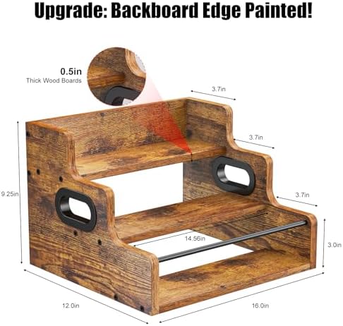 KLM Liquor Bottle Display Shelf, Coffee Syrup Rack Organizer, 3 Step Countertop Wine Rack, Mini Bar, Retro Bar Shelf Stand for Whiskey, Spirits