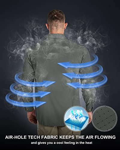 33,000ft Men's Long Sleeve Sun Protection Shirt UPF 50+ UV Quick Dry Cooling Fishing Shirts for Travel Safari Camping Hiking