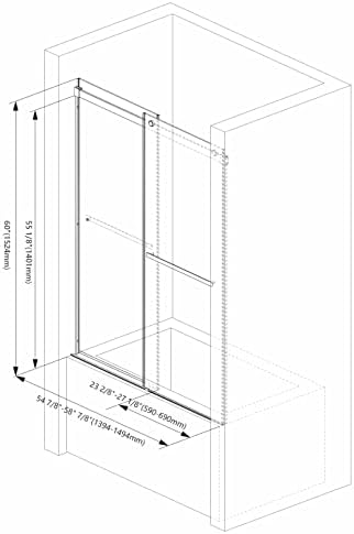 Sunrosa Tub Shower Door 60"×60", Double Sliding Bathtub Door, Frameless Tub Door with Tempered Glass, Glass Shower Door for Bathtub in Matte Black II
