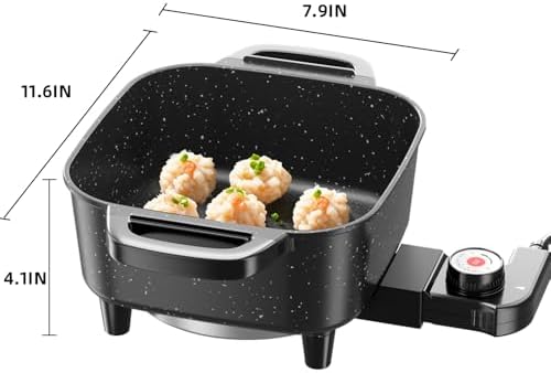 AORAN Electric Frying Pan with Lid, Multifunctional Electric Skillet for Frying, Grilling, Boiling & Cooking, Nonstick, Compact, Easy-to-Clean, Adjustable Temp Control Black