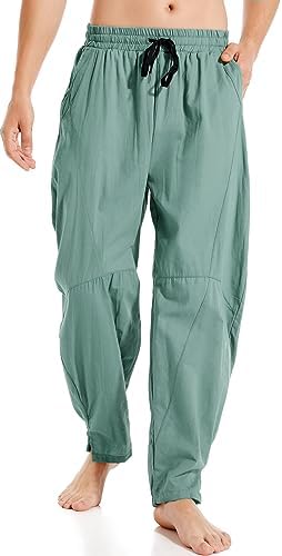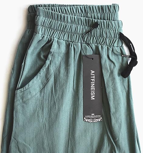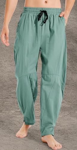 AITFINEISM Mens Cotton Linen Pants Elastic Drawstring Waist Lightweight Summer Beach Pants