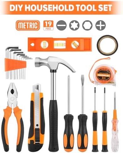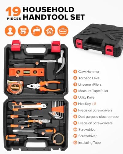 19pcs Household DIY Tool Set, Basic Tools for Home, Office, Dorm, General Hand Kit with Storage Case