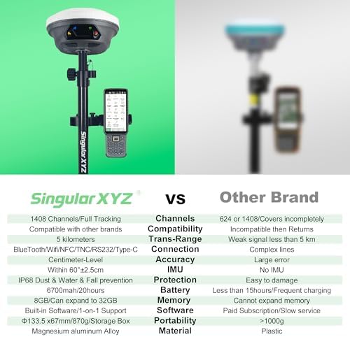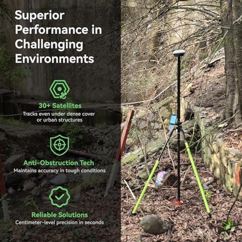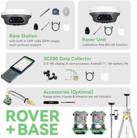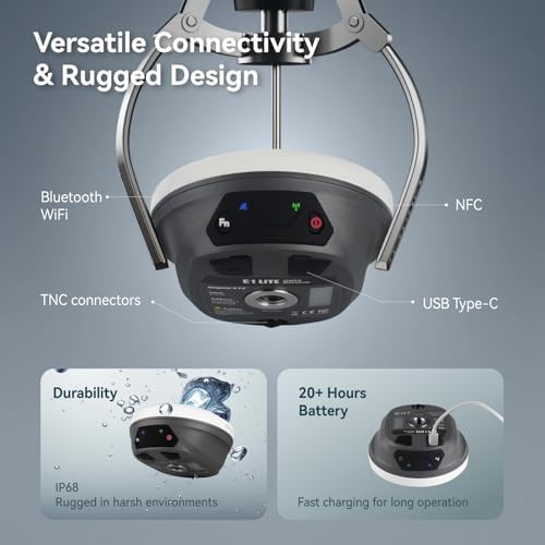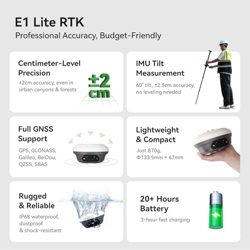 E1 Lite GNSS RTK Surveying Equipment, RTK GNSS GPS with IMU Rover & Base, GPS RTK Handheld Collector with Software, 1cm Accuracy, 1408 Channels, 60° Tilt Survey, 5km UHF Range