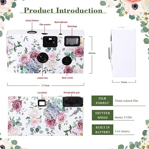 Zhengmy 10 Pack Disposable Camera Bulk for Wedding, 34mm Single Use Camera Bulk with Flash One Time for Gathering Wedding Travel(Pink Rose,Colorful Film)