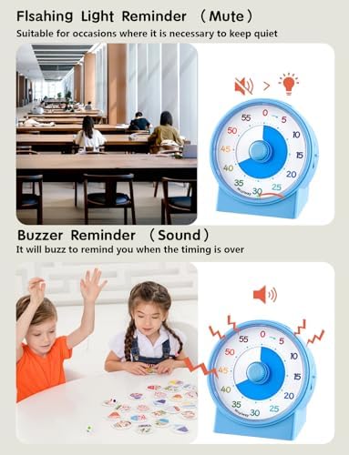 4" Wuyiway Visual Timer for Kids, 60-Minute Countdown Timer for Classroom Office Kitchen, Time Management Tools with Silent Operation, Pomodoro Timer Colorful Pattern