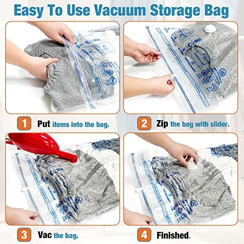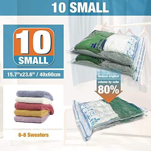 Vacuum Storage Bags, 10 Small Space Saver Vacuum Seal Bags, Space Bags, Vacuum Sealer Bags for Clothes with Travel Hand Pump (10S)
