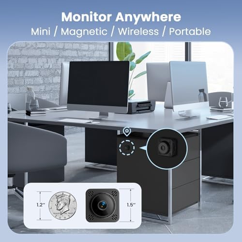 Mini Camera, 4K HD WiFi Nanny Cam - Surveillance Camera with 1-Year Cloud Storage, Motion Detection & Night Vision, No WiFi Needed Cam with Magnetic Mount for Pet\/Baby\/Nanny