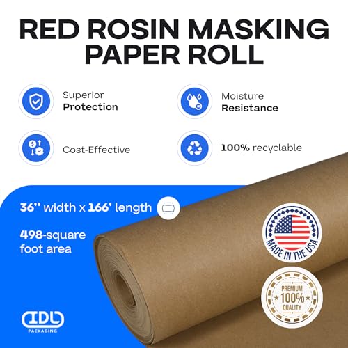 Brown Rosin Masking Paper 36" x 1992" (166 feet), 498 Sq.Ft. \u2013 Thick Floor Covering (66 lb Thickness) - USA-Made Masking Paper for Painting and Construction, Surface Protection by IDL Pac