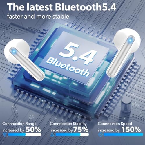 Bluetooth Earbuds Wireless Headphones, 60H Deep Bass Ear Buds with 4 Noise Cancelling Microphone, IP5 Waterproof Earphones for iPhone Android Sports Gaming School audifonos bluetooth inalambricos