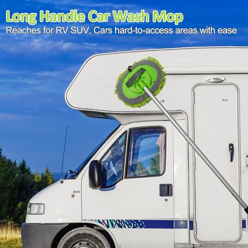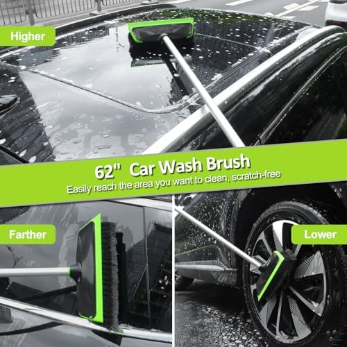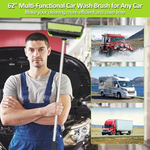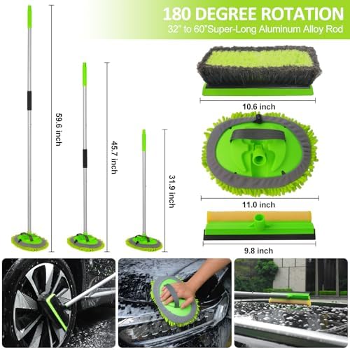 NIKCOSMK 62'' Car Wash Brush with Long Handle, Car Wash Kit, Chenille Microfiber Car Wash Mop Mitt, Window Squeegee, Car Brushes for Washing Exterior, Car Cleaning Brush Kit Supplies for Truck