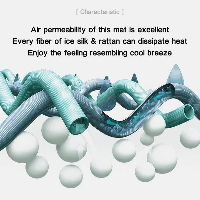 Square Cooling Bedding Mat,Ice Silk Rattan Matting,Foldable Jacquard Mixed Ice Silk \u0026amp; Rattan Mat with Matching Pillowcases, Ice Vine Mat (Blue, King)