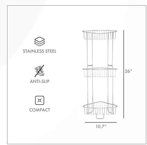 ToiletTree Products Stainless Steel Floor Shower Caddy - Corner Caddy Shelf for Bathroom and Bath Storage - Rust-Proof Caddy for Shampoo, Soap, and More
