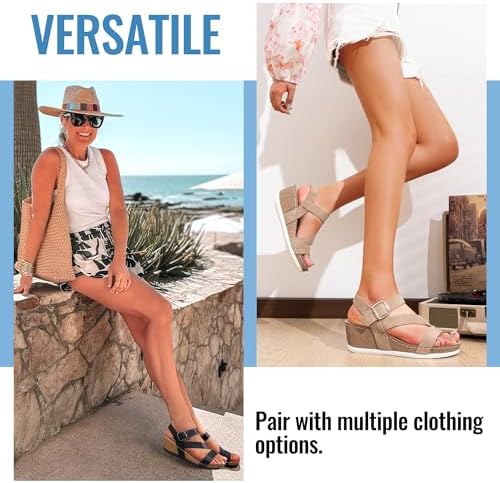 Jeossy Women's Platform Wedge Sandals 835 Comfortable Open Toe Ankle Strap Summer Walking Sandals with Buckle