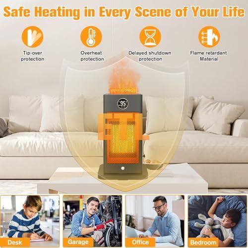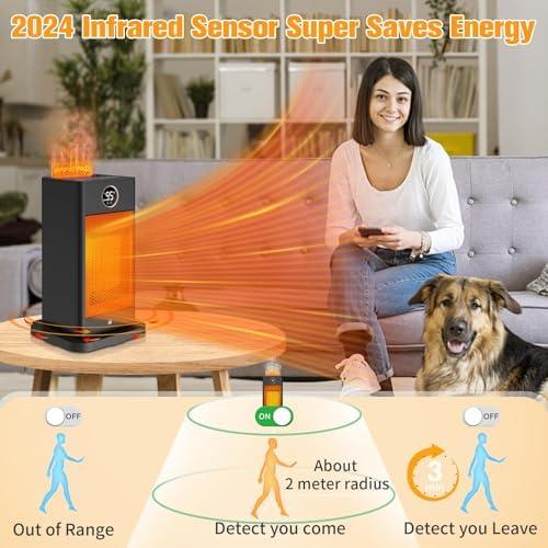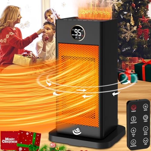 Space Heaters for Indoor Use,1500W PTC 2s Fast Heating Space Heater Large Room with Sensor Humidifier 3D Flame Effect Oscillating,Heater for Bedroom,Office Heat Up 260 sq.ft