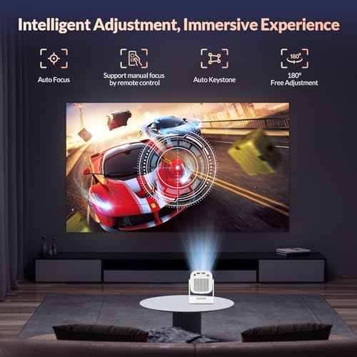 [Auto Focus&1080P]Reiie HY260Pro Mini Smart Projector with 4K Support, WiFi6 + Bluetooth 5.4, 200 ANSI, Built in Speaker, Air Mouse remote, Voice Control, Outdoor Movie Projector