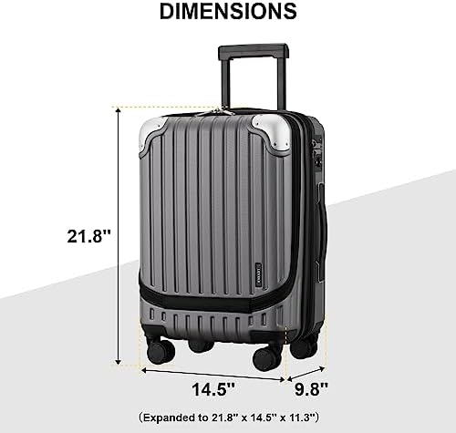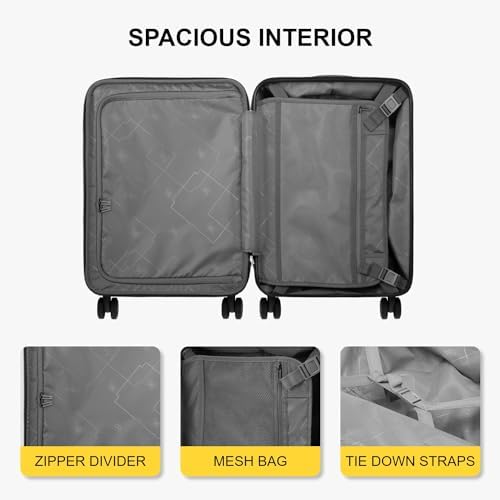 LEVEL8 Grace Carry On Luggage, 20 Inch Expandable Hardside Suitcase, Abs+Pc Harshell Spinner Luggage with Tsa Lock, Spinner Wheels, Grey, 20 Inch Carry-On