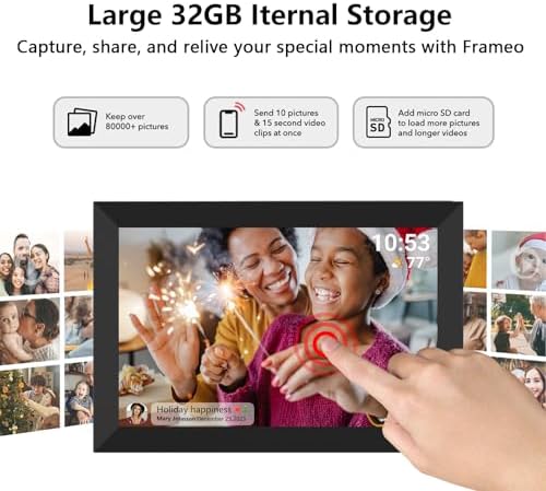 32GB FRAMEO 10.1 Inch Smart WiFi Digital Photo Frame 1280x800 IPS LCD Touch Screen, Auto-Rotate Portrait and Landscape, Built in 32GB Memory, Share Moments Instantly via Frameo App from Anywhere