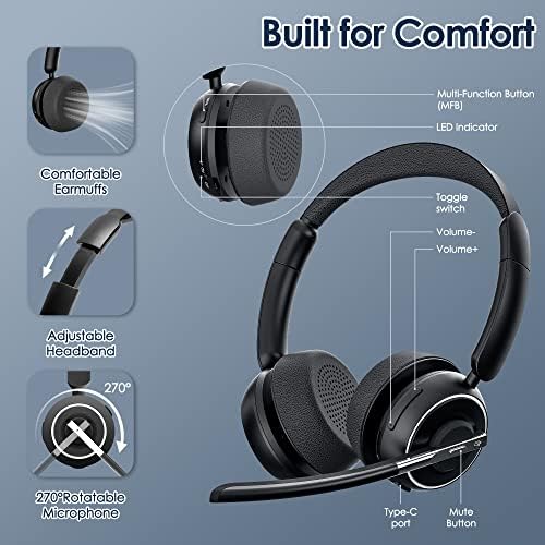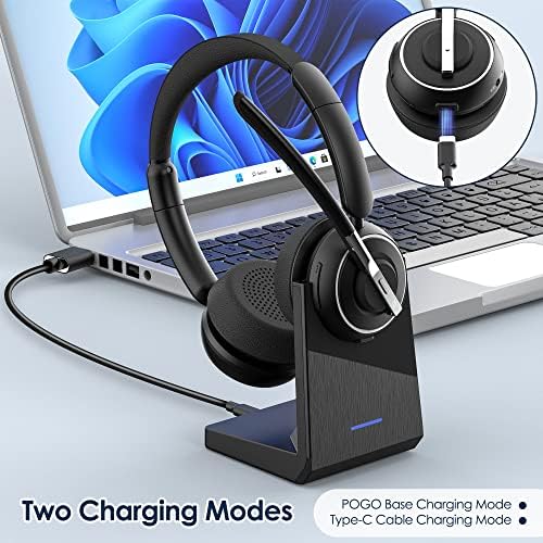 Wireless Headset, Bluetooth Headset with AI Noise Cancelling Mic, Bluetooth V5.2 Headphones with USB Dongle, Charging Base & Mic Mute for PC\/Cell Phones\/Call Center (Black)