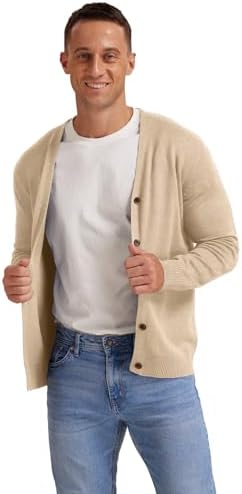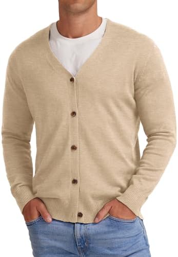 NITAGUT Men's Vintage Striped Long Sleeve Cardigan Sweater with Button V Neck Knitted Sweaters