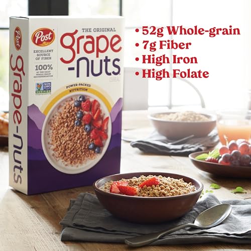 Post Grape Nuts Original Breakfast Cereal, Crunchy Whole Grain Wheat and Barley Cereal, Non-GMO Project Verified, 20.5 OZ Box