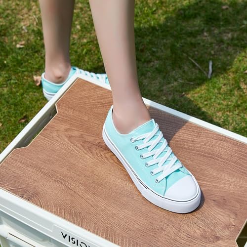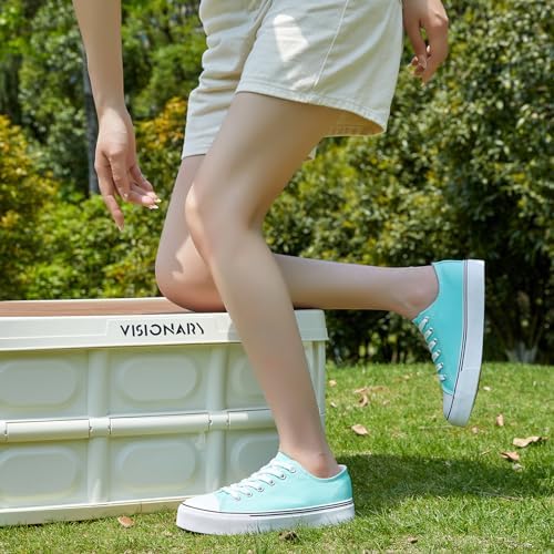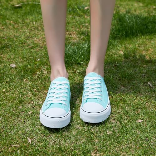 ZGR Womens White Tennis Shoes for Women,Lace up Canvas Sneakers,Casual Walking Canvas Shoes