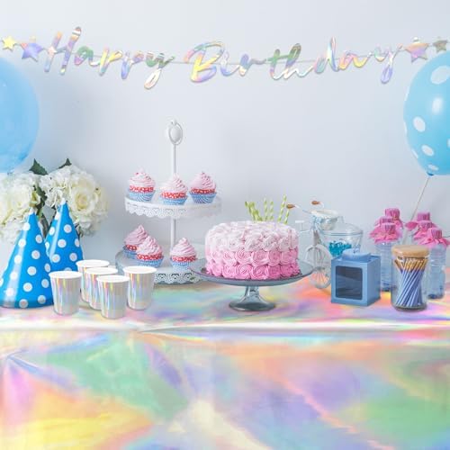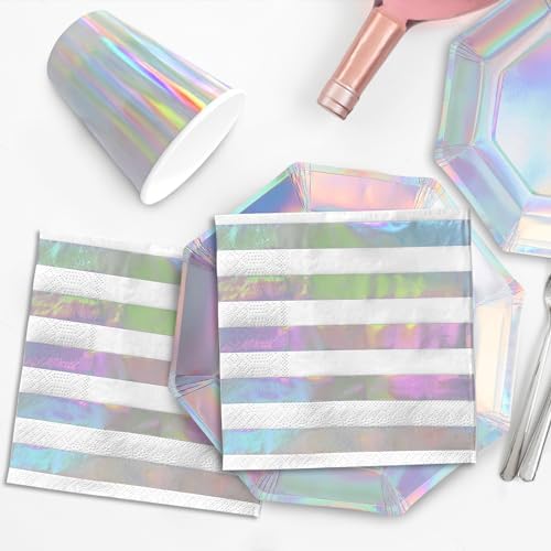 Iridescent Party Supplies - Disposable Paper Plates, Cups, Napkins, Tablecloth & Banner - Ideal for Mermaid Themed Events & Birthday or Wedding Party Decoration - Serves 25