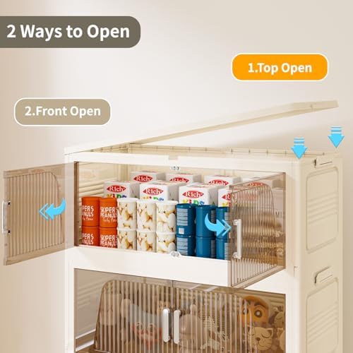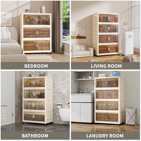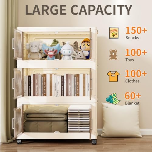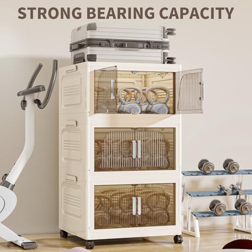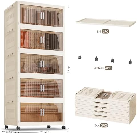 KHNR 400Qt Stackable Storage Bins with Lid, 5Packs Closet Organizer and Storaging Drawer, Collapsible Storage Box with Wheels, Plastic Clothes Storage Cabinet Containers for Home, Office, Dorm