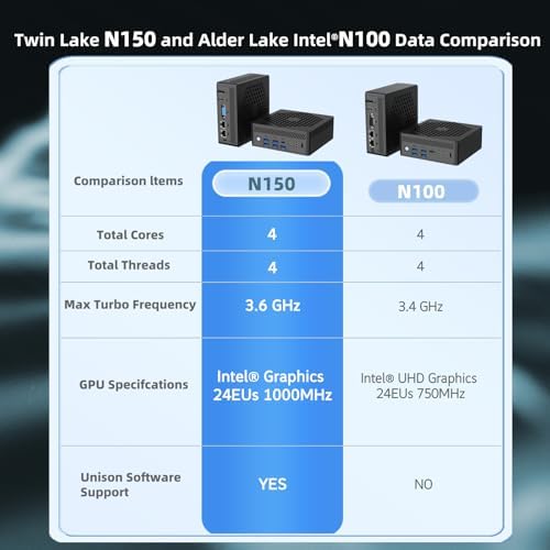 Fanless N150 Mini PC with Type-C DC in(Support PD Function), Intel 12th Twin Lake N150 16GB DDR4 RAM 512GB SATA SSD Desktop Mini Computer Upto 3.6GHz,WiFi ax,HD+DP+VGA Triple Display,5xUSB 3.0,Type C