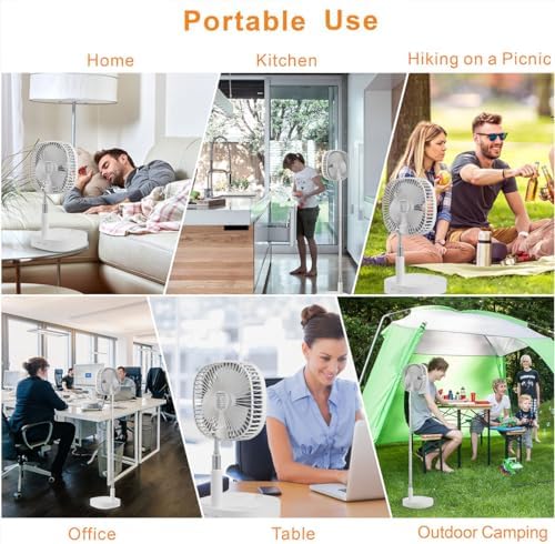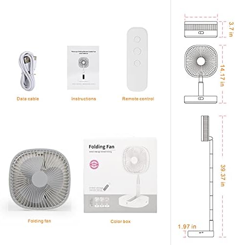 Portable Pedestal Fan - Foldaway Standing Fan Foldable Desk Fan, Use 7200Mah Rechargeable Battery, Remote Control Telescopic 4 Speed Quiet Timer Fan for Home Kitchen Outdoor Camping (Gray)