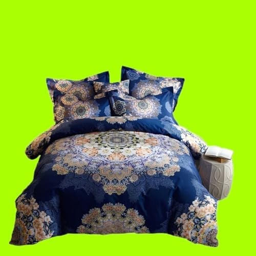 JUxiangW1317 New Chinese Ethnic Style Cotton Thickened Woolen 4Piece Quilt Cover Set Four Piece Set 1.8m Bed Double Cotton Comfort Cover Set, Bedding Set 2.0