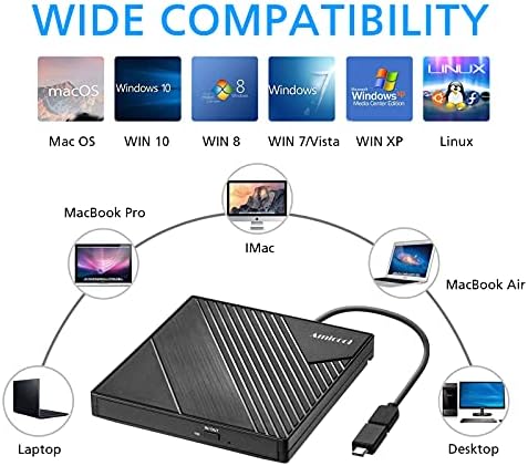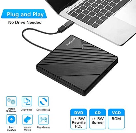 Amicool External DVD Drive USB 3.0 USB C CD Burner CD\/DVD +\/-RW Optical Drive, Slim Portable DVD CD ROM Rewriter Writer Duplicator for Laptop Desktop PC Windows 11\/10\/8\/7 MacBook Mac Linux OS App
