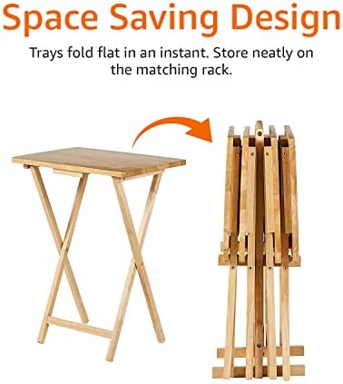 Amazon Basics Classic Foldable TV Dinner Tray Table with Storage Rack, 14.6 L x 19 W x 26 H inch, Natutral, 4-Pack
