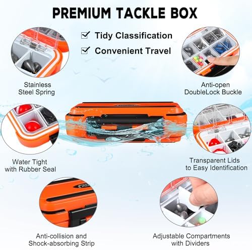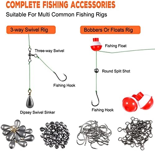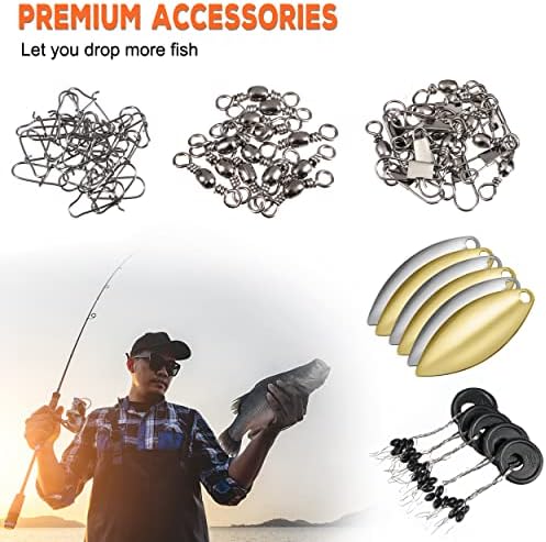 PLUSINNO 253\/387pcs Fishing Gear Accessories Kit, Fishing Tackle Box with Tackle Included, Fishing Hooks, Fishing Weights Sinkers, Spinner Blade, Fishing Equipment for Bass Trout Bluegill Crappie