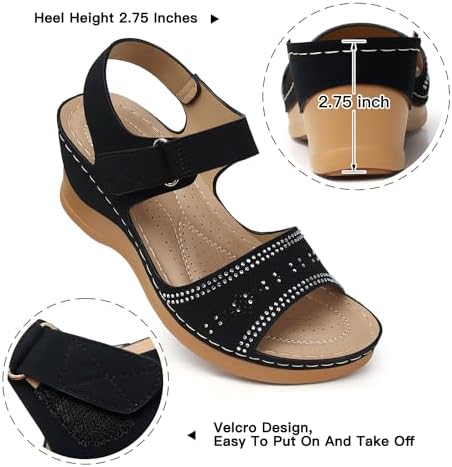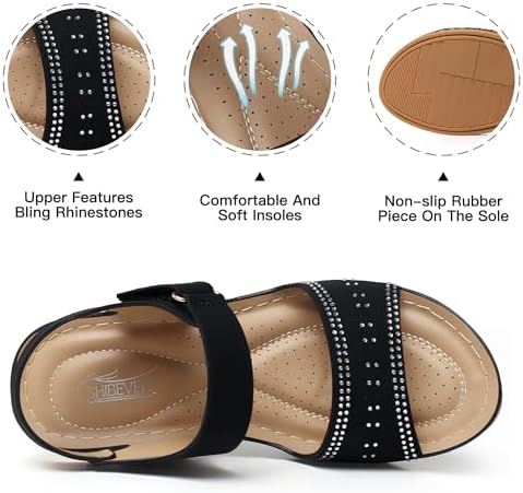 SHIBEVER Wedge Sandals For Women Low: Dressy Summer Sandal - Comfortable Rhinestone Sandals