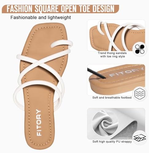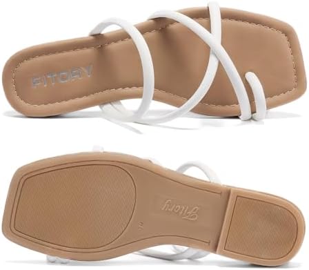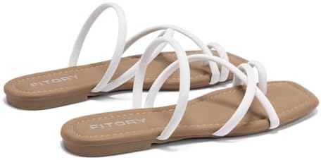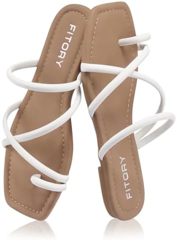 FITORY Women's Slide Sandals Flat Toe Ring Thongs with Cross Strap for Summer Size