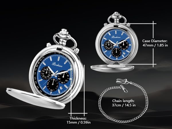 BOSHIYA Multifunctional Stopwatch Calendar Silver Gold Black Pocket Watch with Bracelet