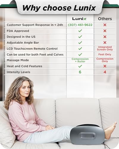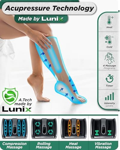 Lunix LX21 Feet Massager with Remote for Pain Relief, Circulation and Heat Therapy, Foot and Calf Shiatsu Massager for Plantar Fasciitis and Neuropathy, Ankle Device, Gray