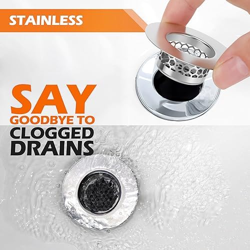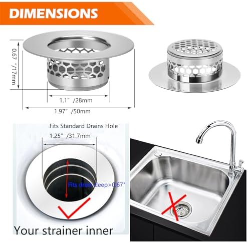 浴室水槽过滤器,浴缸卫生间水槽排水过滤器,适用于洗衣、拖把池、实用、斜坡、房车水槽、不锈钢排水过滤器。适合孔尺寸从 1.25 英寸(约 3.2 厘米),3 件装(2.8 厘米)