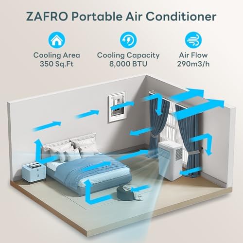 ZAFRO 8000 BTU Portable Air Conditioners for Room up 350 Sq. Ft Portable Ac Quiet Unit with Cooling, Dehumidifier, Fan, Sleep Mode,Remote Control