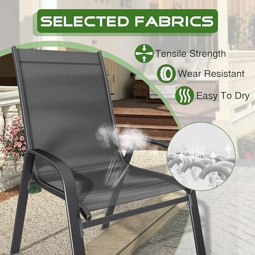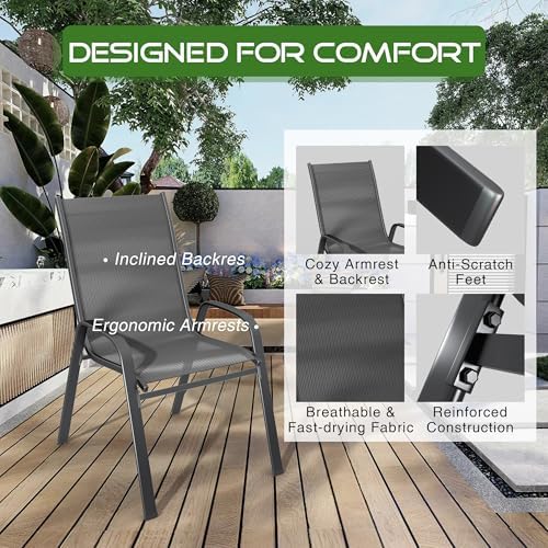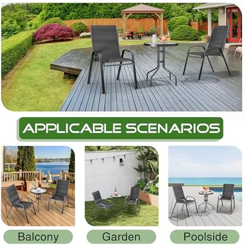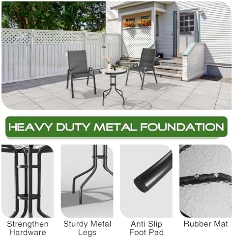 SONGBATE Large Patio Bistro Set 36" Table & 2 Chairs Modern Metal Frame with Textilene Fabric