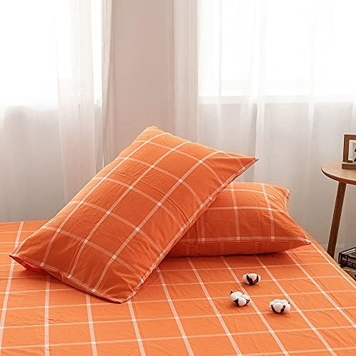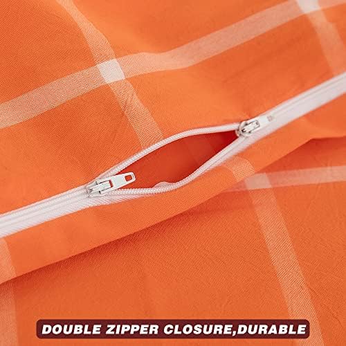 FACE TWO FACE Bedding Duvet Cover Set 3 Pieces 100% Washed Cotton Duvet Cover Linen Like Textured Breathable Durable Soft Comfy (Queen, Orange Grid)
