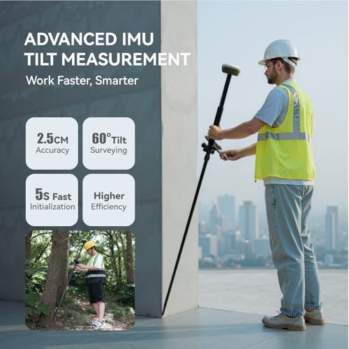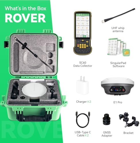 SingularXYZ E1 Pro RTK GNSS Surveying Equipment, GNSS RTK GPS with IMU Rover Receiver, GPS RTK with Larger HD Color Screen and Handheld Collector, 1cm Accuracy, 60° Tilt Survey, 15km UHF Range