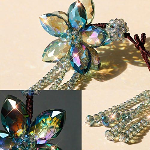 H&D HYALINE & DORA 11.4 Inch Crystal Color Flower Interior Accessories Car Charms Pendants for Auto Rear View Mirror Hanging Decoration with Tassel