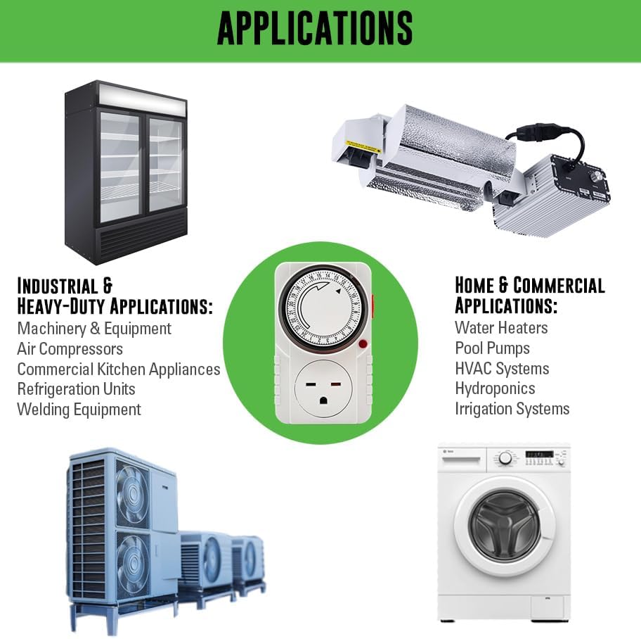 Generic 240V Mechanical Timer with Dual Outlet for Aquarium, Grow Light, Hydroponics, Indoor Lighting, Home Appliances, White, TM-M1\/240