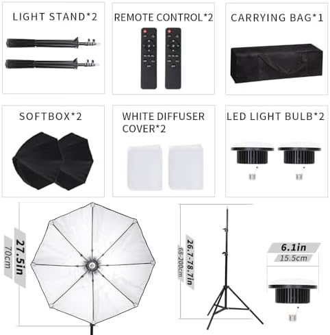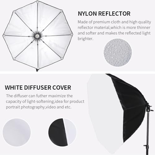 FEIFANTEAM Octagonal Softbox Lighting Kit, Professional Continuous Photography Lighting 85W 3000-6500K LED Bulb Photo Studio Equipment Portrait Photography, Video Recording, Live Streaming Fill Light