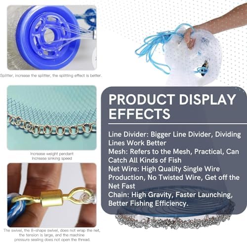 PANGYRNG 360 centimeter hand thrown fishing net, high-strength nylon loop chain, suitable for bait casting fishing equipment \\/39, 12345