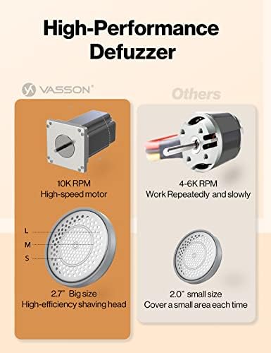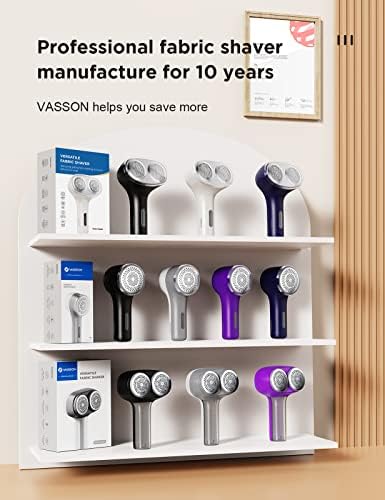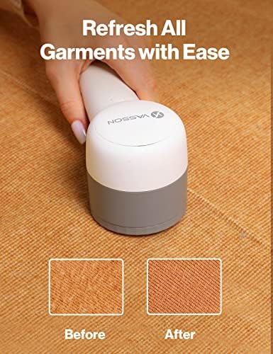 VASSON Fabric Shaver, Sweater Shavers to Remove Pilling, High-Perf Defuzzer, Rechargeable Electric Lint Shaver for Fuzz and Lint Balls from Clothing, Upholstery (Greyish White)